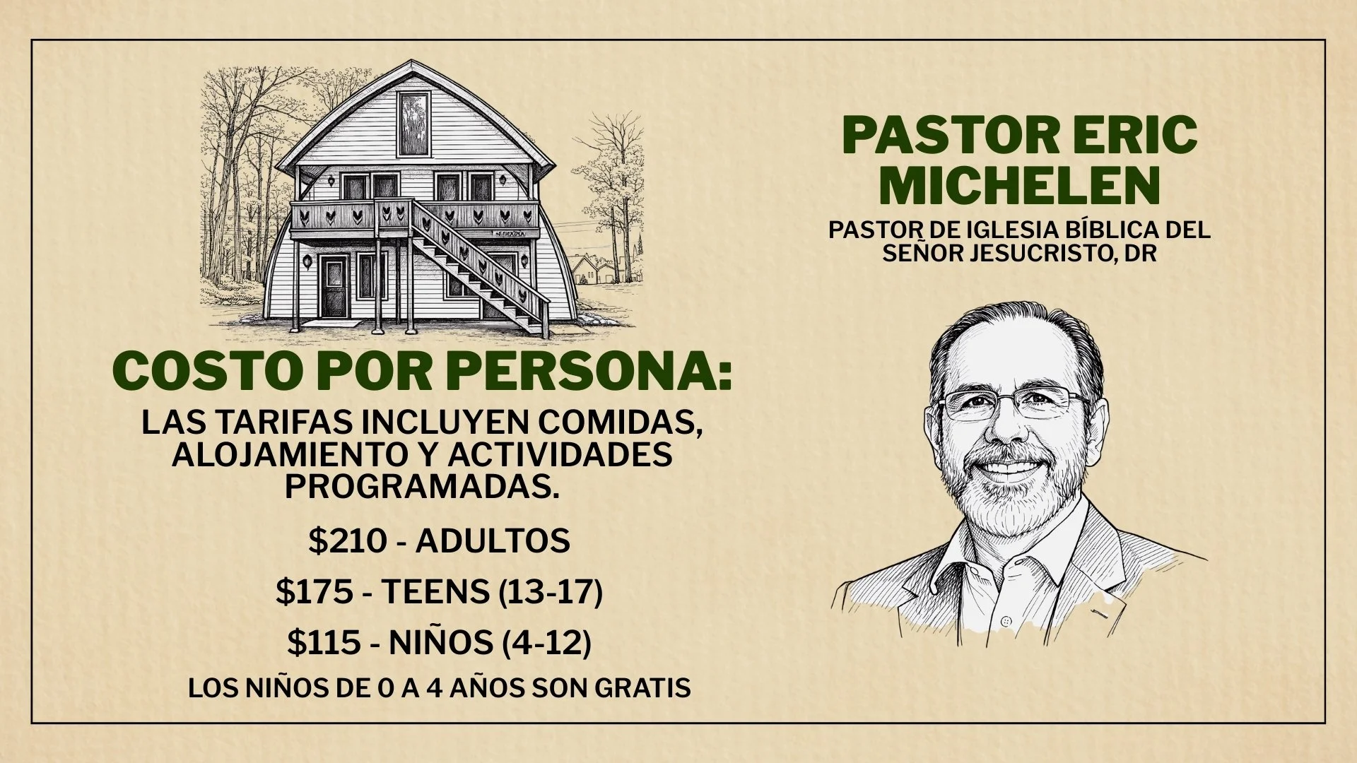 Nos complace tener con nosotros al Pastor Eric Michelen de la Iglesia Bíblica del Señor Jesucristo en la República Dominicana, quien será nuestro orador principal. Durante el fin de semana, compartiremos cuatro sesiones de estudio bíblico, momentos de adoración y tiempo para crecer juntos en la Palabra de Dios.
